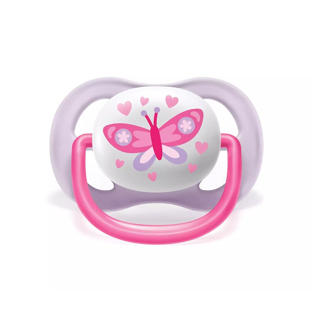 Avent Suc Air Coll 0-6m Girl Scf080/02 MAM/BFL. Cette sucette ventilée Avent coll Girl apporte du confort aux bébés de 0 à 6 mois en limitant les irritations autour de la bouche. Son système de circulation d’air est particulièrement adapté pour les peaux sensibles des nouveau-nés. Le modèle est conçu spécifiquement pour les filles.
