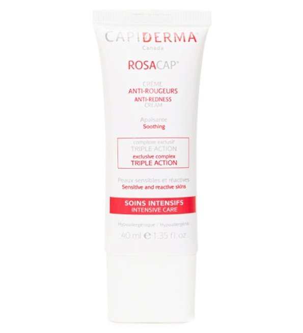 Capiderma rosacap anti rougeurs est une crème apaisante 40ml enrichie en eau thermale et agents calmants pour les peaux sensibles et réactives.