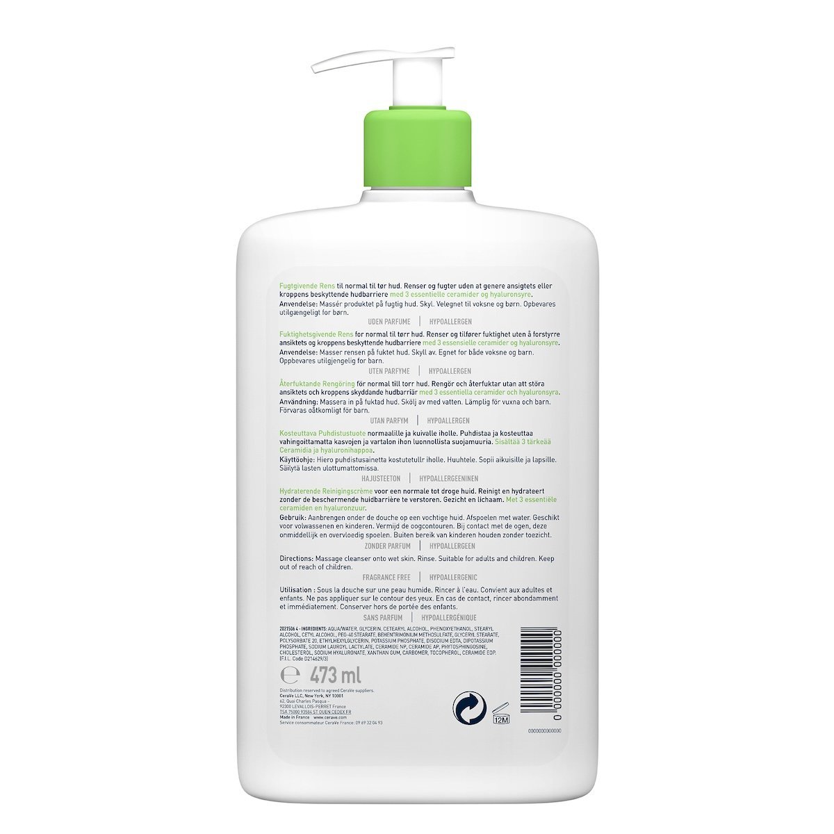 Cerave Creme Lavante Hyd 473ml+Creme Hyd Sp50 52ml+Ech Pack : Ce que contient le Cerave Creme Lavante