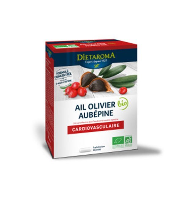 Dietaroma Ail Olivier Aubepine “Capital Coeur” 60gelules. Contribuer au bon fonctionnement du système cardiovasculaire et au maintien d’une bonne circulation, c’est l’objectif du complément alimentaire Dietaroma ‘Capital Coeur’. Cette formule associe trois plantes reconnues: l’ail noir fermenté bio, l’olivier et l’aubépine. Le flacon contient 60 gélules, ce qui correspond à une cure de 30 jours selon la posologie indiquée. Sa composition à base d’extraits de plantes soigneusement sélectionnées et cultivées de façon durable en fait un produit adapté à une utilisation régulière.