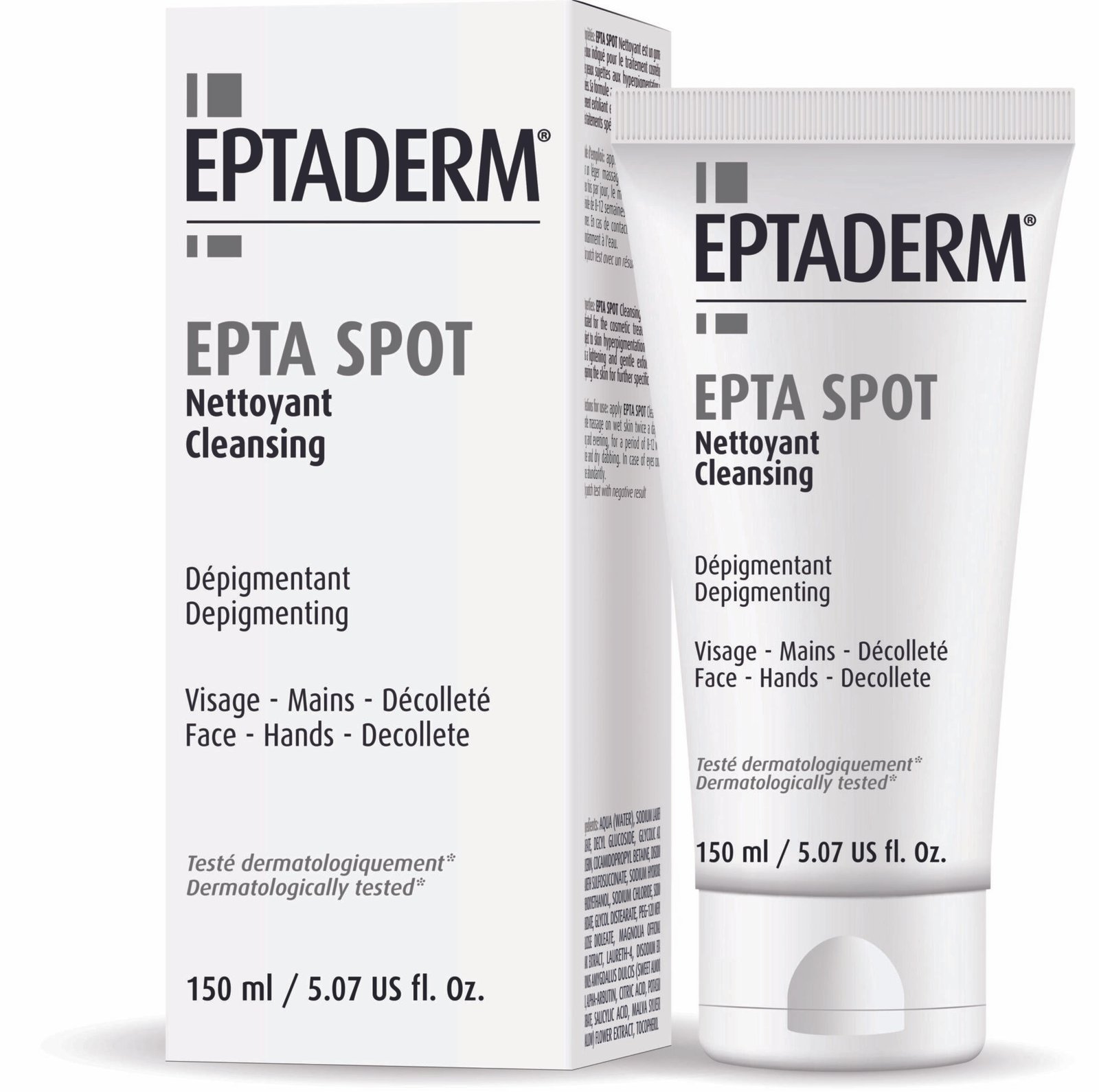 Epta Spot Nettoyant 150ml. Pour nettoyer en douceur les peaux qui présentent des taches ou une hyperpigmentation, le Epta Spot Nettoyant agit comme une première étape de préparation. Ce gel lavant de 150ml nettoie la peau tout en l’exfoliant légèrement grâce à des actifs ciblés, ce qui peut être utile avant d’appliquer un soin dépigmentant plus concentré.