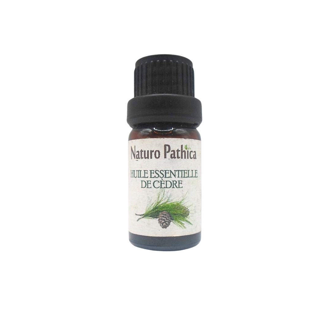 Conseil d’utilisation — Cette HE de cèdre est contre-indiquée pendant la grossesse, l’allaitement et chez les enfants. Elle est neurotoxique et abortive à fortes doses. Pour la chute de cheveux, testez d’abord sur une petite zone du cuir chevelu diluée à 5% maximum dans une huile végétale.