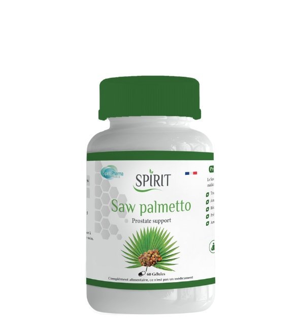 Spirit Saw Palmetto 60 Gelules. Spirit palmetto gelules — Pour les hommes qui cherchent un soutien naturel pour leur bien-être urinaire et capillaire, le Spirit Saw Palmetto propose un extrait concentré de Serenoa repens. Ce complément alimentaire se présente sous forme de 60 gélules, une contenance qui permet une utilisation sur plusieurs semaines.