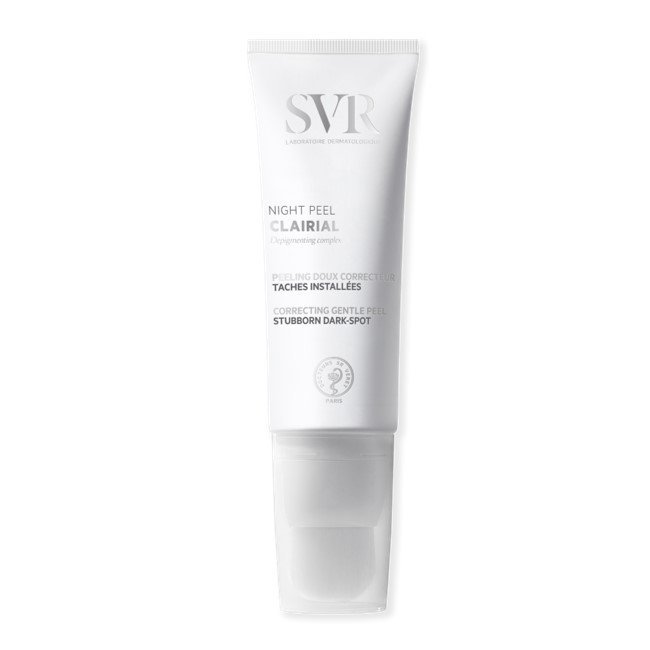 SVR Clairial Night Peel “Advanced Peel” 50 ml. Pour les peaux présentant des taches pigmentaires installées, un teint terne ou des signes de maturité, le Svr clairial night offre une action corrective pendant la nuit. Ce soin peeling combine plusieurs actifs pour travailler en profondeur sur l’uniformité du teint et la texture de la peau. Son format de 50 ml permet une utilisation sur le long terme.