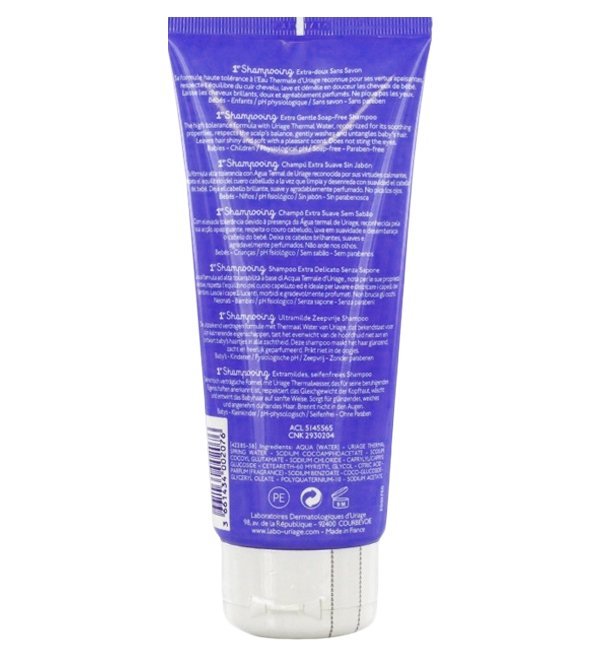 Uriage Bb 1er Shampooing 200ml. Pour nettoyer en douceur le cuir chevelu fragile des nourrissons et des bébés, le Uriage BB 1er Shampooing propose une formule sans savon qui respecte la barrière cutanée. Ce uriage shampoing Ce shampooing de 200ml convient également aux enfants et aux adultes ayant un cuir chevelu sensible ou réactif, une peau délicate qui peut être mise à mal par le calcaire ou la chaleur marocaine.