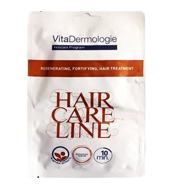 - Dispensez une noisette de Vitadermologie soin reparateur dans la paume de votre main. La quantité varie selon l’épaisseur et la longueur de votre chevelure.